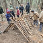 - Weaving branches and “duff” (piles of dirt) for a roof, which covers the shelter and insulates it for warmth.