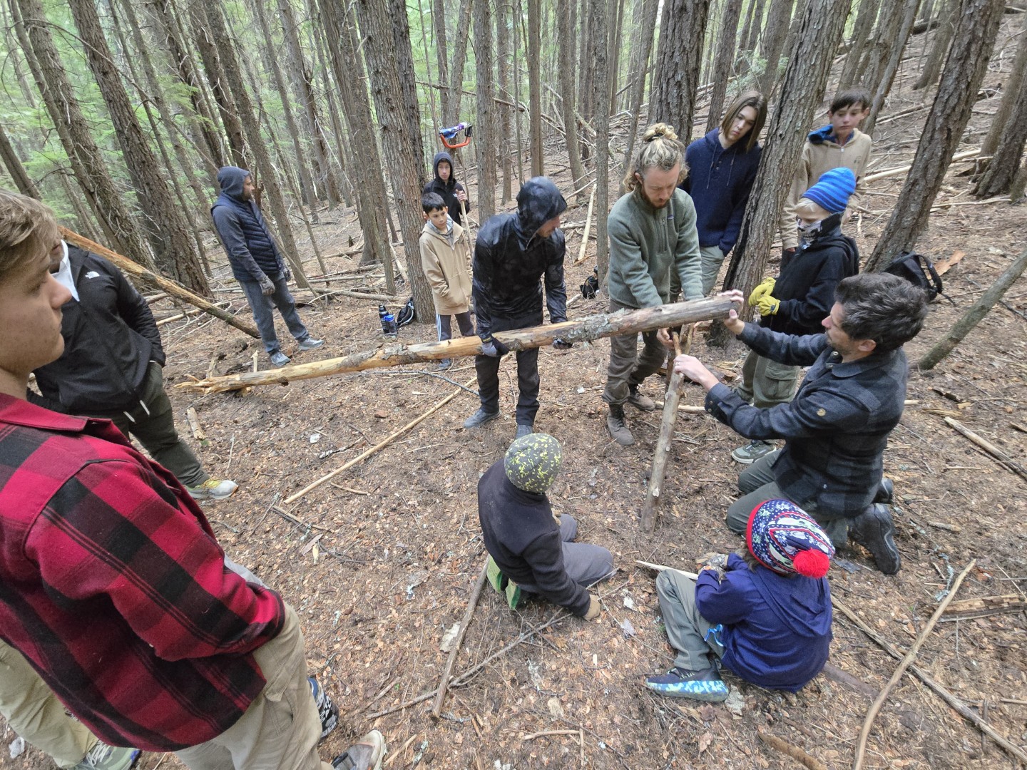 The Twin Eagles team took us into the forest to find a spot. They taught us how to build a primitive survival shelter with only resources from nature.