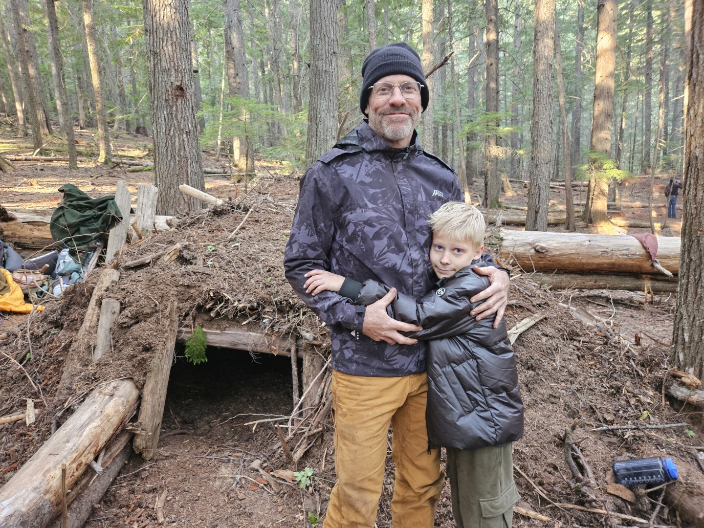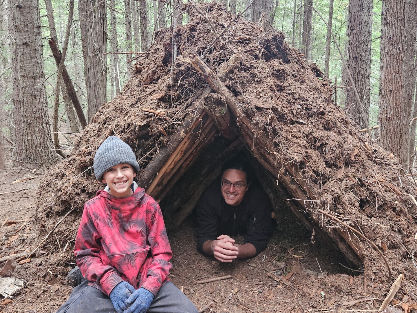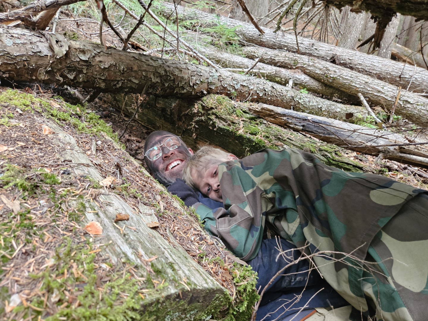 After five or six hours of hard work, we were feeling pretty “done.” The shelter felt good enough even though I knew it lacked a complete roof with insulation. We sat down to rest with some of the other dads who got their shelters to 90%.