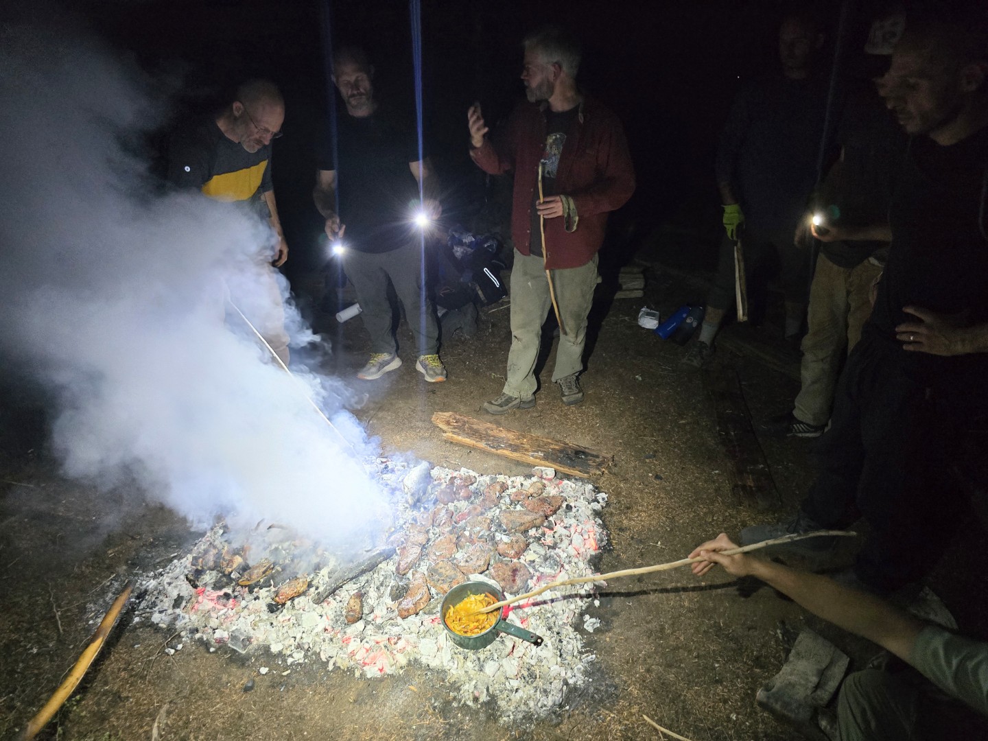 This raised everyone’s exhausted spirits and nourished us in primal ways. The feast included local elk, duck, and trout cooked over glowing coals (not a grill or skewers). This was the most unique meal I’ve ever experienced and contributed to. The whole group gathered wood and sticks to create the fire needed. Then several of us fathers helped prepare and cook the food. I felt the extreme heat as I moved meat around on the coals and embraced the raw “skillet” we had produced.