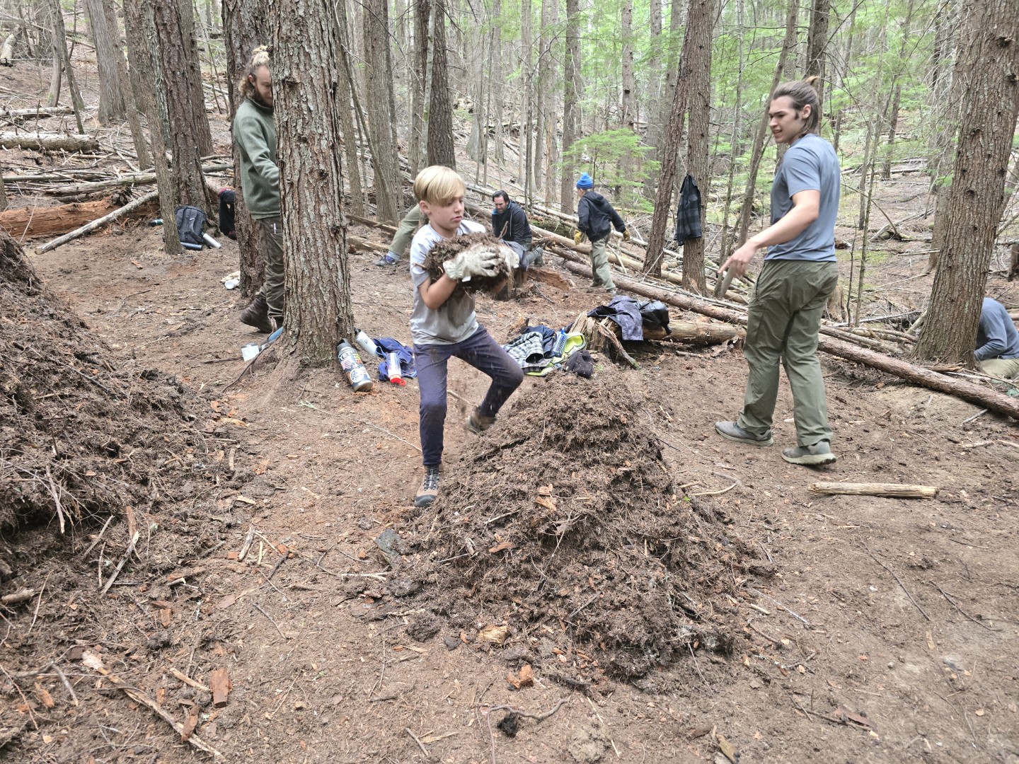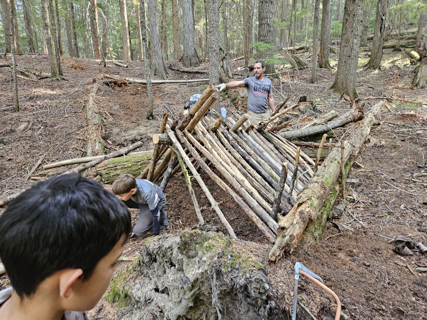 Soon after, Tim showed up and pushed us to finish the shelters. He emphasized the need for warmth during cold Idaho nights. Everest and I got some help from Owen to finish the shelter and complete an air-tight roof. Later that evening I was grateful for Tim and Owen as we slept in a very warm container.